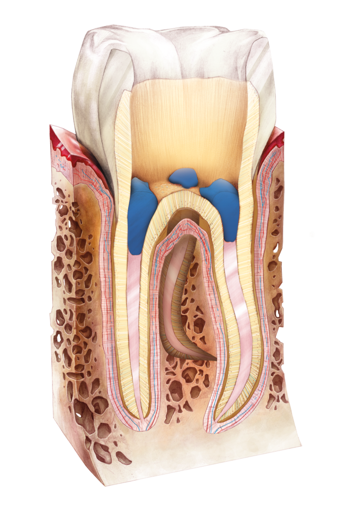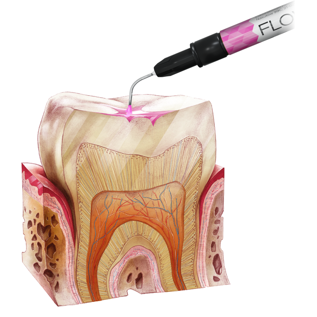- Use a coloured FLOW–COLOR drop on radiographs to instantly confirm the correct canal in cases where two canals overlap.