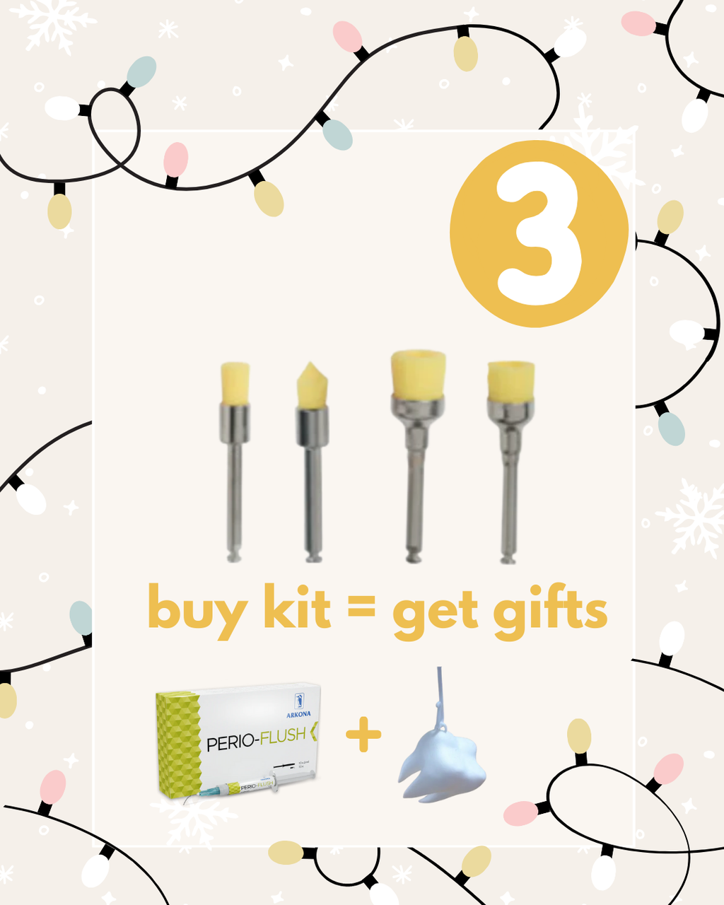 Upgrade your prophylaxis kit now, and enjoy free extras - practical for your clinic and festive for the season. A limited-time Christmas bundle that brings care and cheer.
