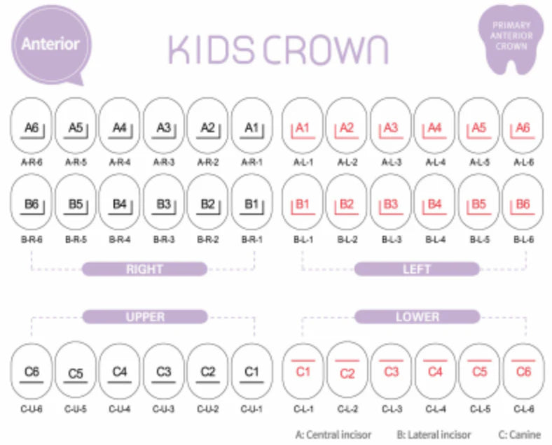 - Anterior Full Kit: 48 crowns (48 sizes × 1 each)
