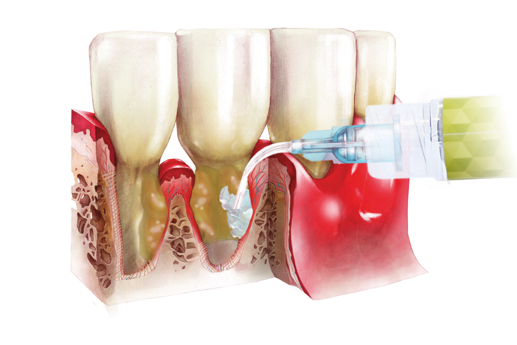 PERIO-FLUSH is suitable for rinsing periodontal pockets in the following situations: